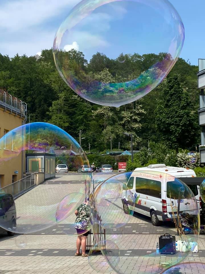 Bubble Zauber Riesenseifenblasenshow im bergischen Kinder- und Jugendhospiz Burgholz in Wuppertal